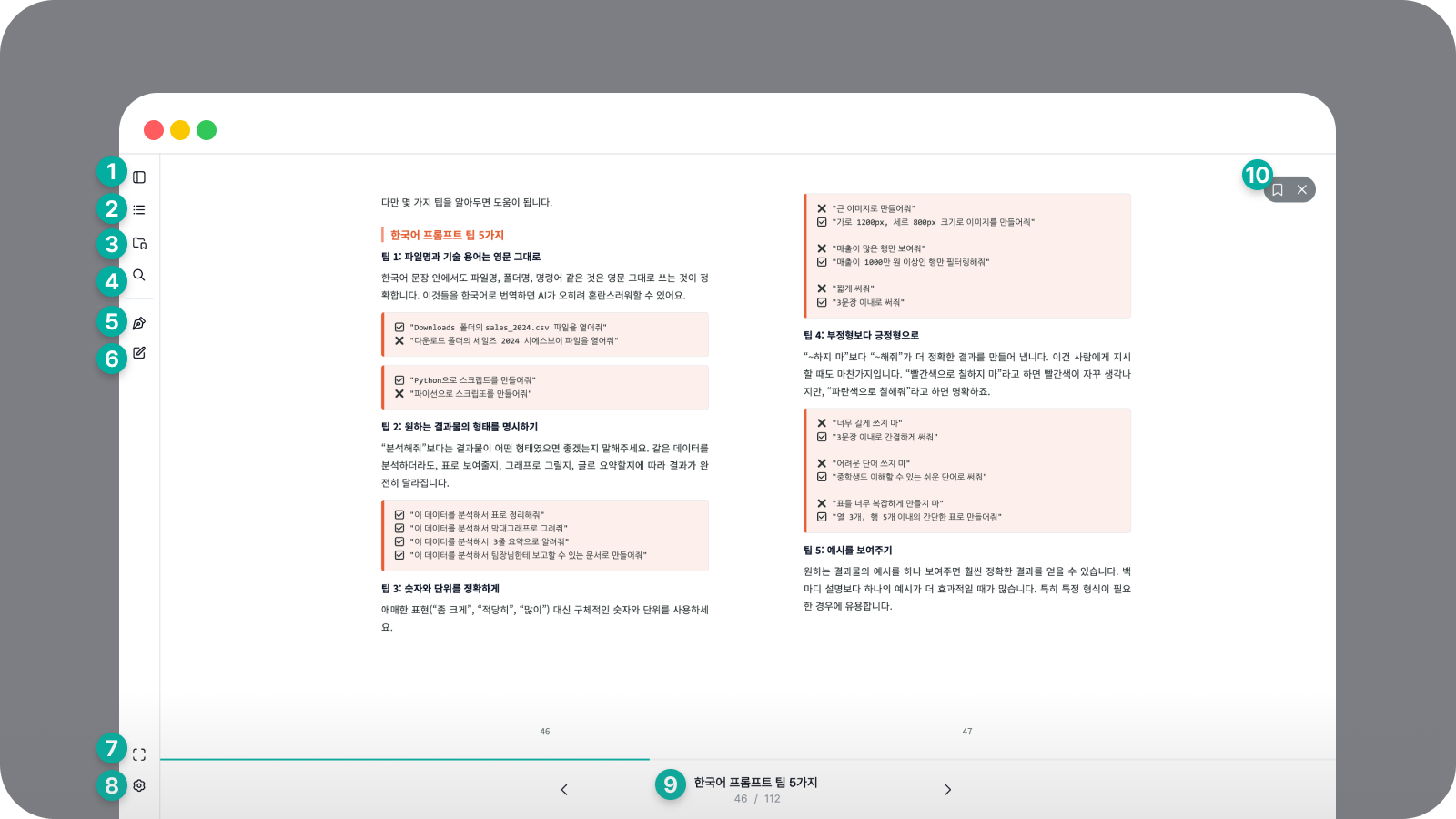 북마크와 메모를 확인하고, 필기한 위치로 바로 이동할 수 있어요.