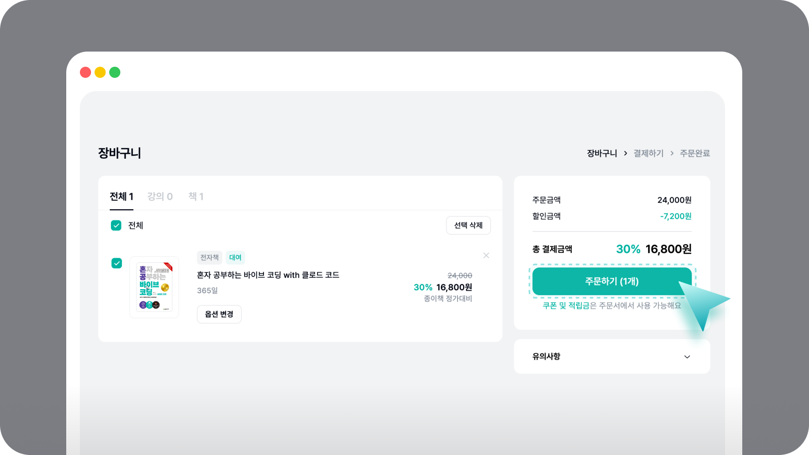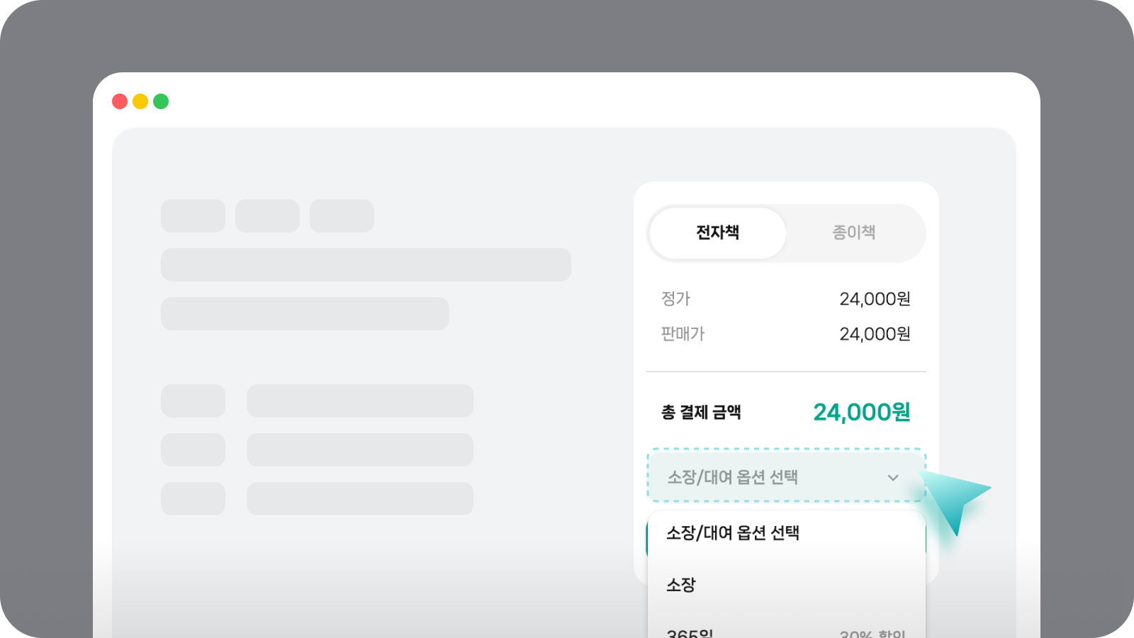 장바구니에서도 전자책 이용 옵션을 변경할 수 있습니다.