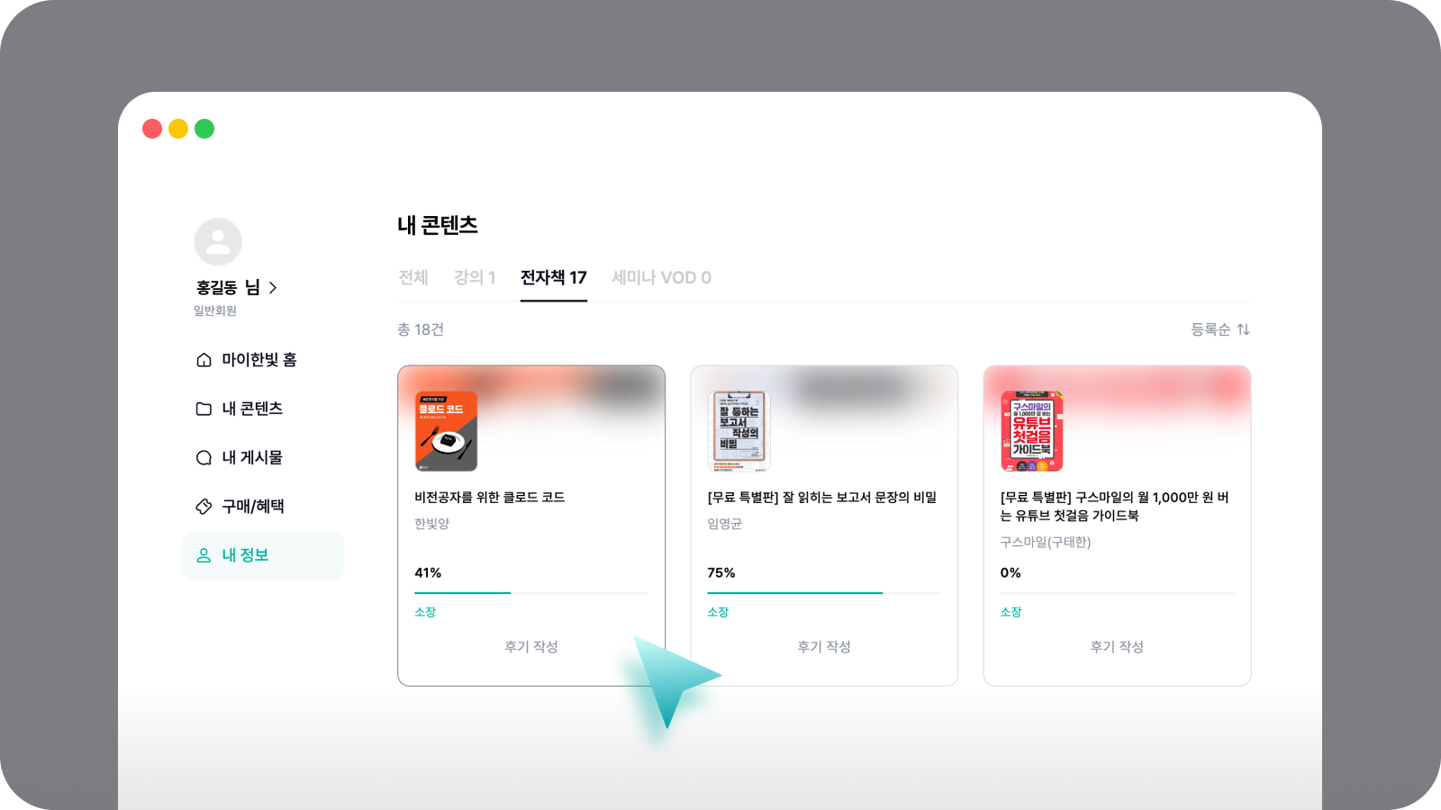 구매한 전자책은 [마이한빛 > 내 콘텐츠]에서 바로 열람할 수 있습니다.