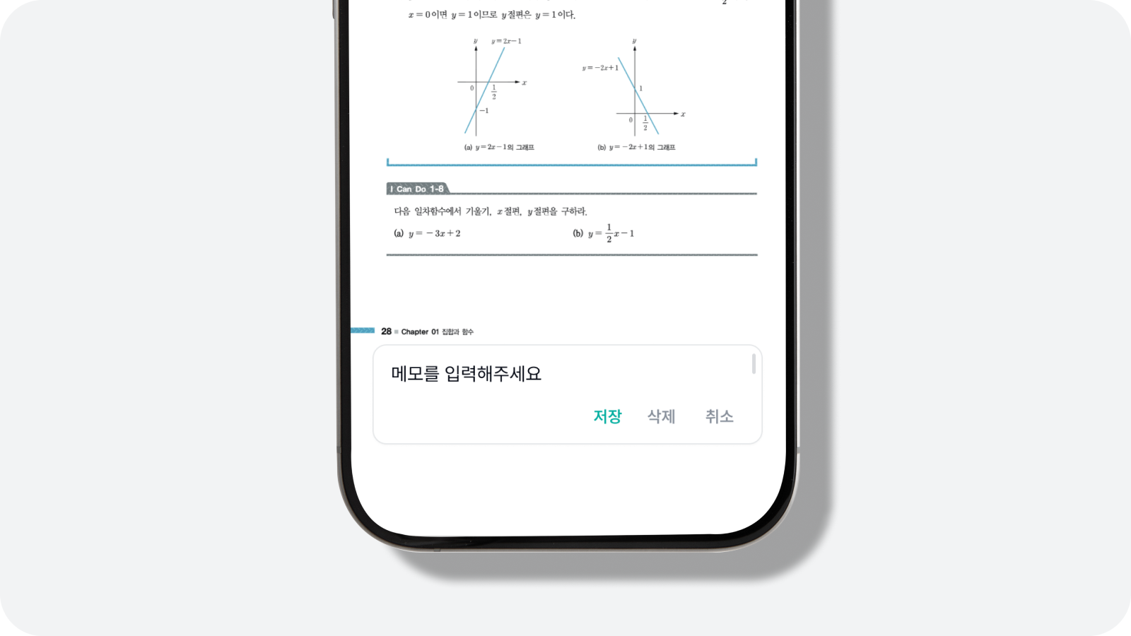 전자책 열람 중 또는 강의 수강 중 떠오른 생각을 메모로 남겨 학습을 정리할 수 있습니다.