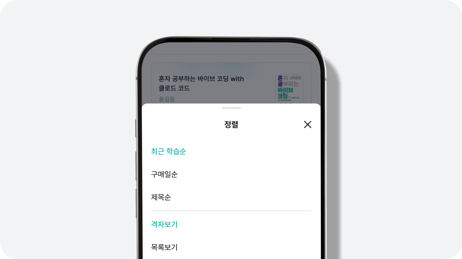 구매한 전자책과 강의를 한곳에서 확인하고 필터와 정렬 기능을 통해 원하는 콘텐츠를 쉽게 찾을 수 있습니다.